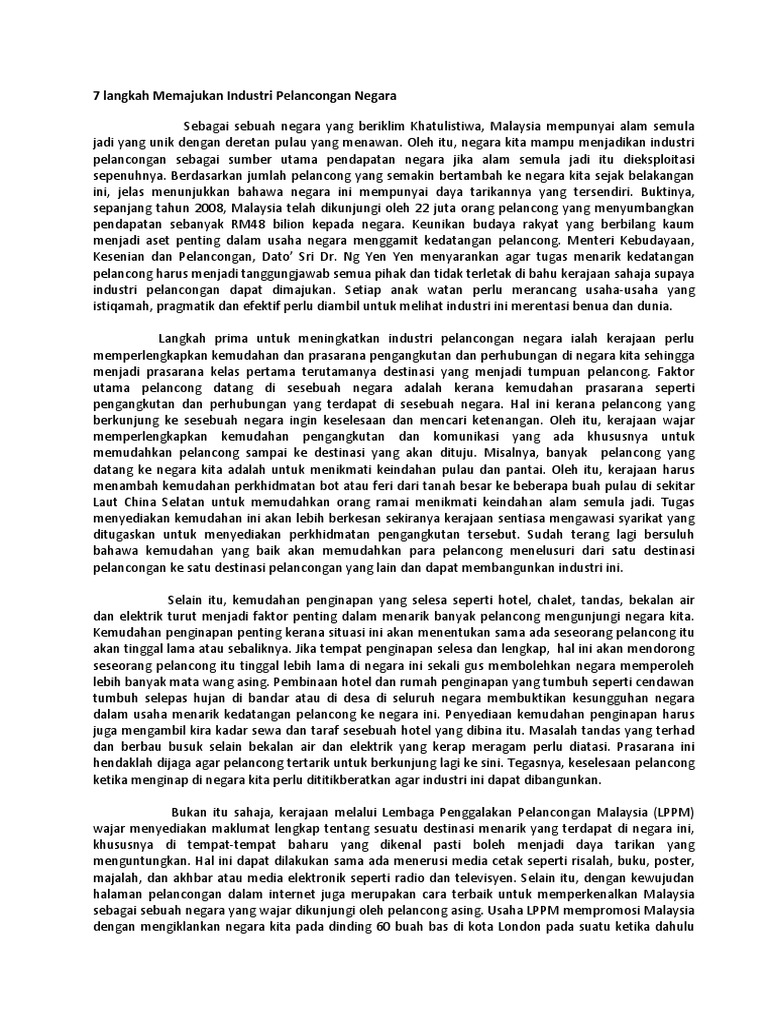7 Langkah Memajukan Industri Pelancongan Negara Pdf